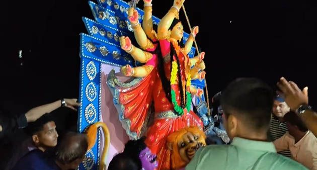 উত্তম কুমার পাল হিমেল, নবীগঞ্জ থেকে ॥ নবীগঞ্জ উপজেলায় ৯৩টি মন্ডেপ শারদীয় দূর্গাপুজা শান্তিপূর্ণভাবে সম্পন্ন হয়েছে। দশমীবিহিত পূজাশেষে আনন্দ উল্লাসের মধ্য দিয়ে মুর্তির শোভাযাত্রাসহ নবীগঞ্জ শহর প্রদক্ষিণ শেষে গতকাল বৃহস্পতিবার সন্ধ্যায় নবীগঞ্জ উপজেলার করগাঁও ইউনিয়নের মাধবপুর পিংলী নদীঘাটে দেবী দূর্গার বিসর্জন সম্পন্ন হয়। উপজেলা পূজা উদযাপন পরিষদের ভারপ্রাপ্ত সভাপতি রঙ্গলাল রায়ের সভাপতিত্বে এবং সাংগঠনিক সম্পাদক নীলকন্ঠ দাশ সামন্ত নন্টী ও দপ্তর সম্পাদক সুকান্ত দাশের পরিচালনায় অনুষ্ঠানে অতিথি হিসেবে বক্তব্য রাখেন উপজেলা নির্বাহী কর্মকর্তা রুহুল আমিন, পৌরসভার সাবেক মেয়র ছাবির আহমদ চৌধুরী, ওসি শেখ মো. কামরুজ্জামান, উপজেলা হিন্দু বৌদ্ধ খ্রিস্টান ঐক্য পরিষদের সাধারণ সম্পাদক ও প্রেসক্লাবের সাবেক সভাপতি উত্তম কুমার পাল হিমেল, উপজেলা পজীপ কর্মকর্তা সাকিল আহমেদ, উপজেলা যুবদলের যুগ্ম আহবায়ক আবুল কালাম মিঠু, সাহেদুর রহমান, হিমাংশু দাশ, হিমাংশু সরকার ভজন প্রমূখ।
