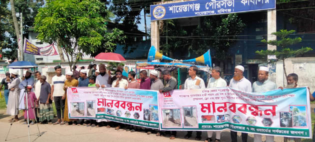 স্টাফ রিপোর্টার ॥ শায়েস্তাগঞ্জ পৌরসভার ৭নং ওয়ার্ডের পূর্ব উবাহাটা গ্রামের প্রধান রাস্তার প্রবেশদ্বার প্রশস্তকরণ, ড্রেন ও রাস্তা সংস্কারের দাবিতে আন্দোলনে নেমেছে এলাকাবাসী। মঙ্গলবার সকালে পৌরসভার সামনে ব্যানার হাতে এলাকার লোকজন মানববন্ধনে অংশ নেন। দীর্ঘক্ষণ রাস্তায় দাড়িয়ে তাদের রাস্তা-ড্রেন সংস্কারের দাবি জানান।